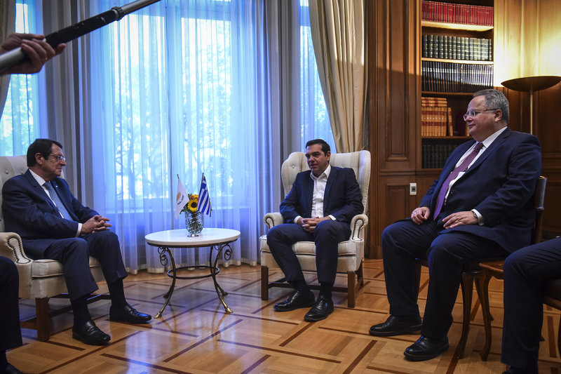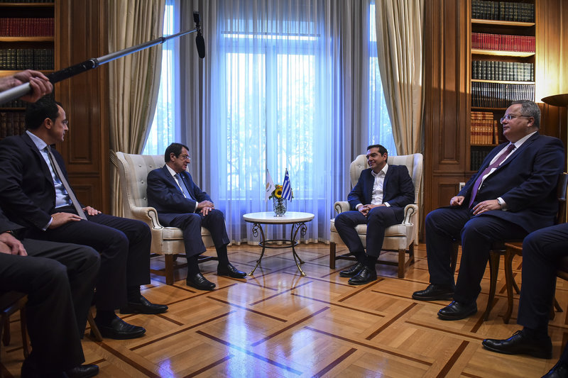 «Είναι πάντοτε στενή η επικοινωνία των δύο κυβερνήσεων» είπε ο πρωθυπουργός, Αλέξης Τσίπρας, υποδεχόμενος στο Μέγαρο Μαξίμου τον Πρόεδρο της Κυπριακής Δημοκρατίας, Νίκο Αναστασιάδη, τον οποίον καλωσόρισε εκφράζοντας τη μεγάλη χαρά του, όπως είπε, που για άλλη μια φορά έχουν τη δυνατότητα να κουβεντιάσουν.