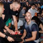Συνεχίζει τη μεγάλη πορεία του Παύλου και του Θανάση. Θέλω ένα χειροκρότημα για τον Παύλο και τον Θανάση, που μας έκαναν υπερήφανους στο ευρωπαϊκό μπάσκετ και συνεχίζει ο Δημήτρης σε τόσο δύσκολες εποχές, να σκάει τα προσωπικά του λεφτά και να βάζει το λιθαράκι στην ομάδα, αυτό το σπουδαίο έργο. Θέλω να αφιερώσω ένα τραγούδι…”