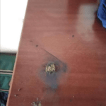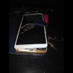 «Κάποια στιγμή γύρω στις 4 τα ξημερώματα ακούω μέσα στον ύπνο μου έναν δυνατό θόρυβο και ξυπνώντας βλέπω φωτιά και καπνό στο τραπεζάκι και κομμάτια πλαστικού να αποκολλώνται από το κινητό. Το κινητό έσκασε δίπλα από τα κρεβάτια που κοιμόμασταν και το δωμάτιο γέμισε καπνό. Άνοιξα τα παράθυρα για να μπορέσουμε να αναπνεύσουμε». Μάλιστα στις φωτογραφίες που ακολουθούν φαίνεται ότι το τραπεζάκι στο σημείο που ήταν το κινητό έχει κολλήσει πλαστικό και έχει καεί.