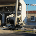Το σημείο της πρόσκρουσης θυμίζει βομβαρδισμένο τοπίο από τα συντρίμμια του αυτοκινήτου.